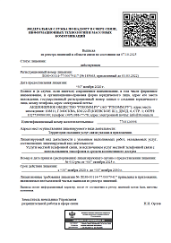 Лицензия № 144073 на оказание «Услуг связи по передаче данных, за исключением услуг связи по передаче данных для целей передачи голосовой информации»